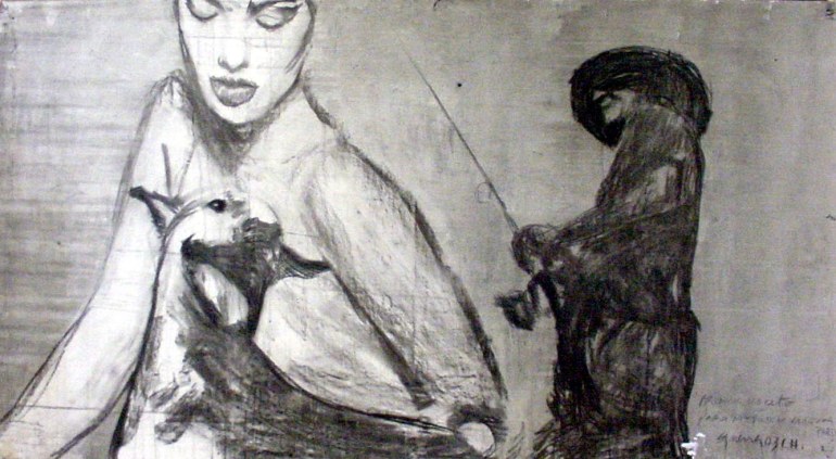 Dibujos y Pinturas Otra serie de dibujos q. reflejan el arte del pintor Guerra. Mujer y niño4′ x 3′LienzoFor sale $300