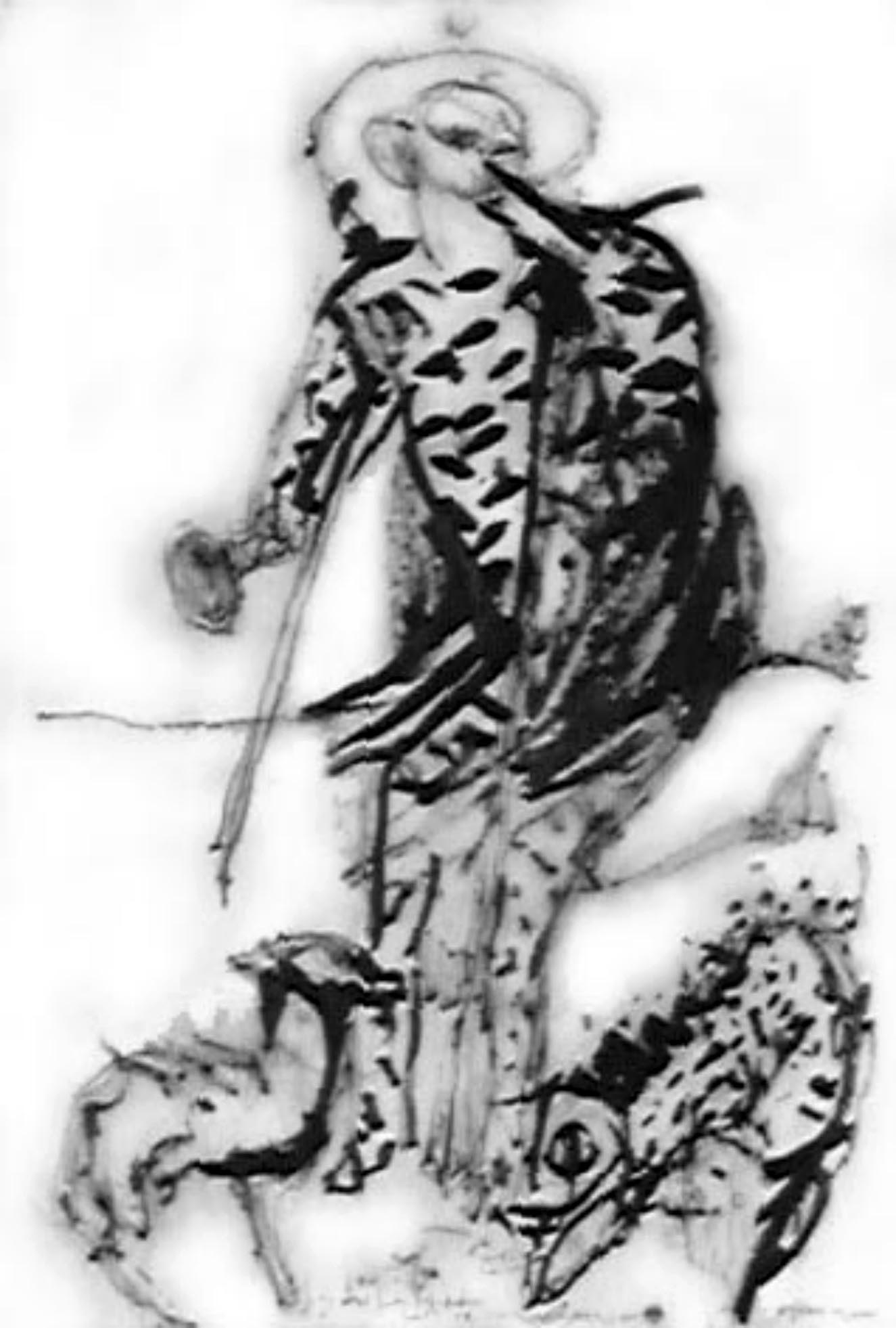 Title: San Lazaro con los perros Medium: Cardboard Size: 21" x 30"